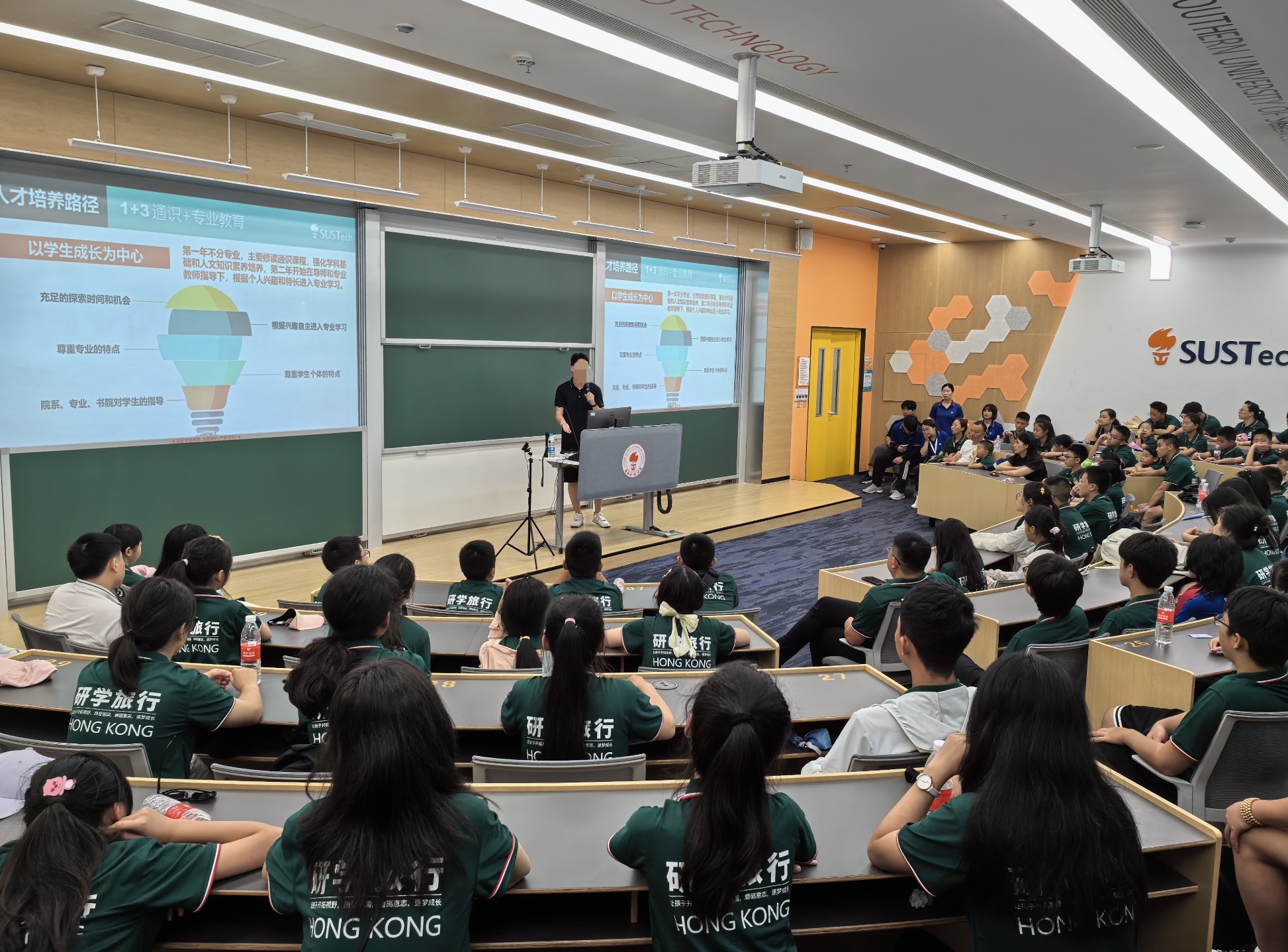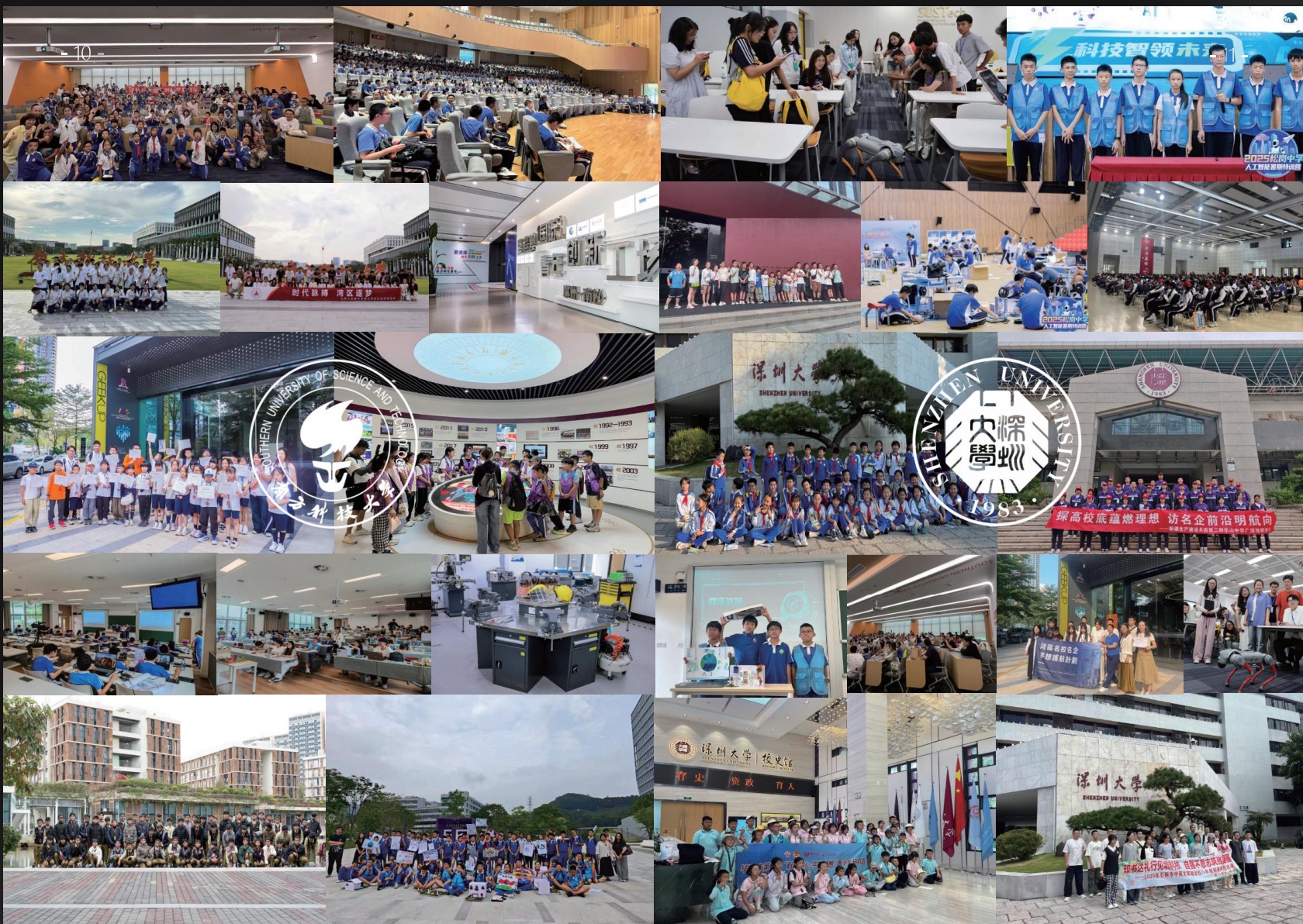 突破传统课堂的沉浸式研学。带领学生走进中科院背景的新型研 究型大学 —— 深圳理工大学,通过科研实验室探秘、院士团队零距离交流等特色环节,深度体验 “三院一体”(学院 + 研究院 + 书 院)育人模式,全方位挖掘 “科研育人、产教融合” 的大学教育内 核。