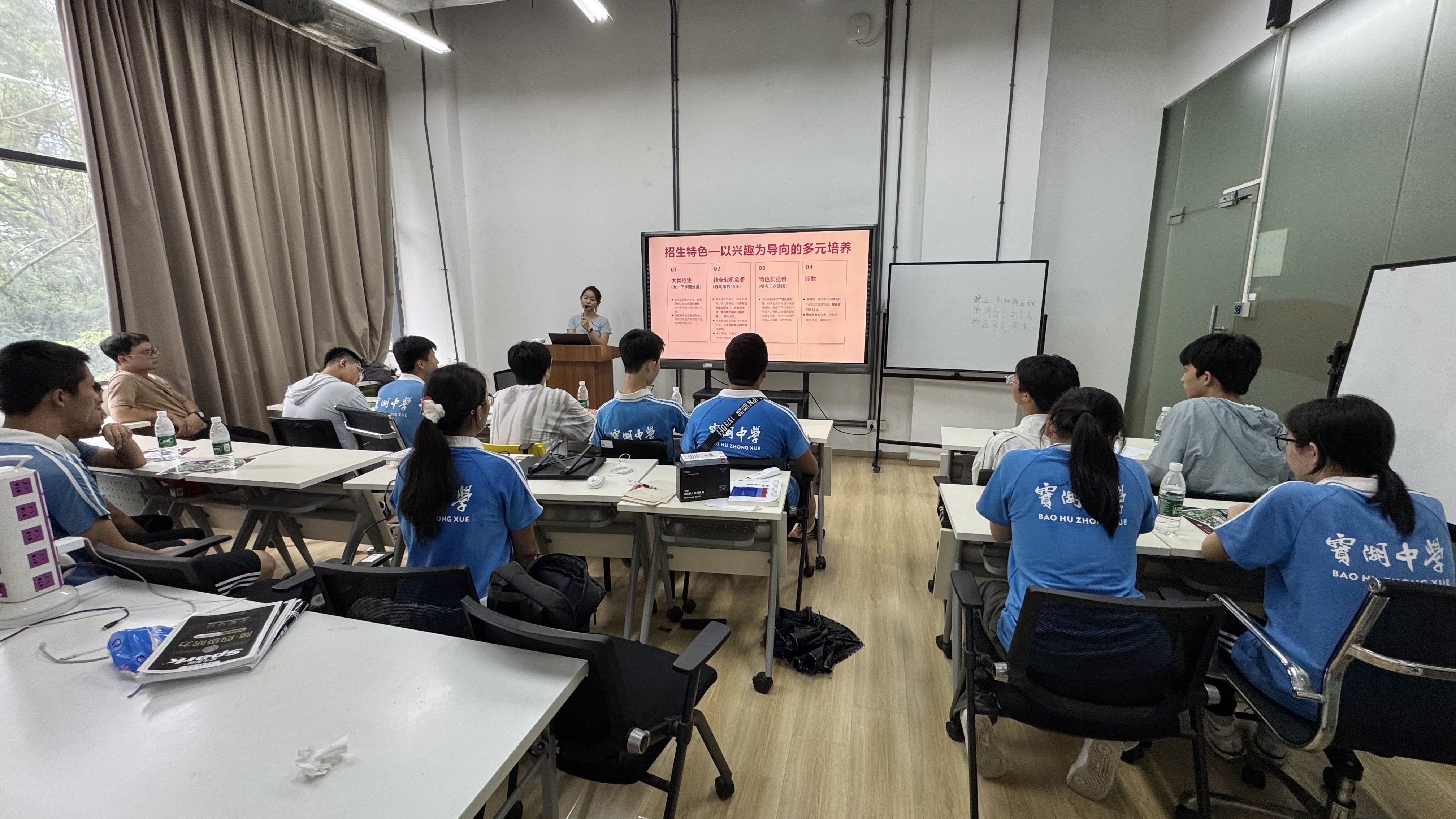 研学交流:1)互动交流:同学们可与深理工计算机学院学长学姐面对面,听他 们分享实验室开发脑机设备、参与华为 AI 项目等经历。 2)专业去向:了解专业选择考量与职业规划。现场能观看机器人编 程演示,动手做声控灯实验,了解 AI 图像识别原理,直观感受计 算机专业魅力,提供未来就业参考。